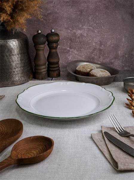 Тарелка мелкая 31 см, кант зелёный